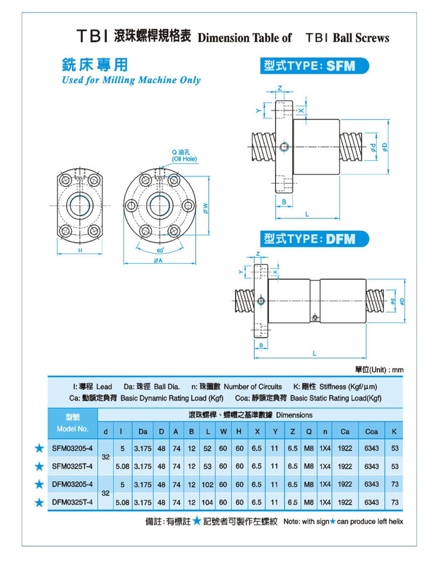 雙螺母TBI銑床專用絲杠DFM3205的特點: