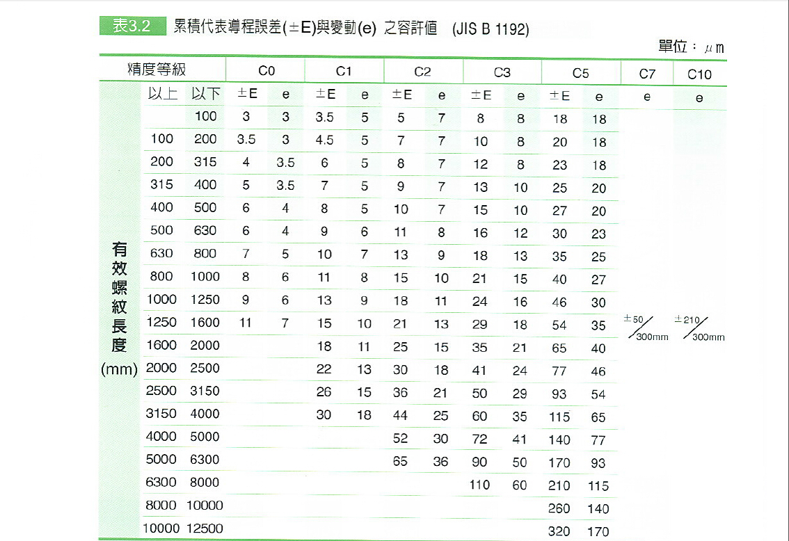 TBI滾珠絲桿有效長度誤差容許值參照下表: