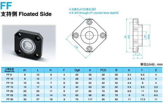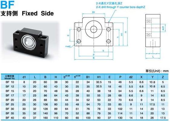 BF方型支撐側系列:BF10、BF12、BF15、BF17、BF20、BF25、BF30、BF35、BF40