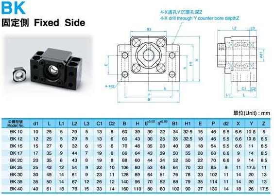 BK方型固定側系列:BK10、BK12、BK15、BK17、BK20、BK25、BK30、BK35、BK40