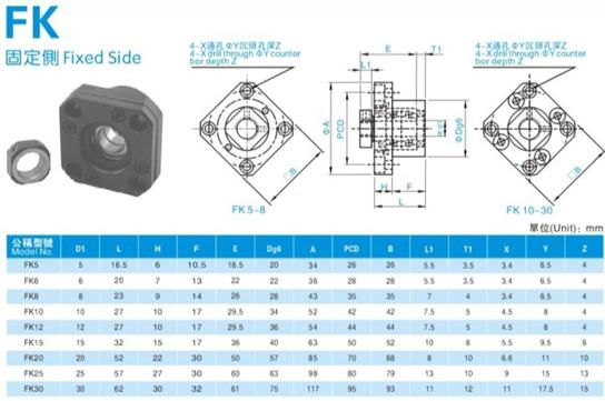 FK圓型固定側系列:FK05、FK06、FK08、FK10、FK12、FK15、FK17、FK20、FK25、FK30