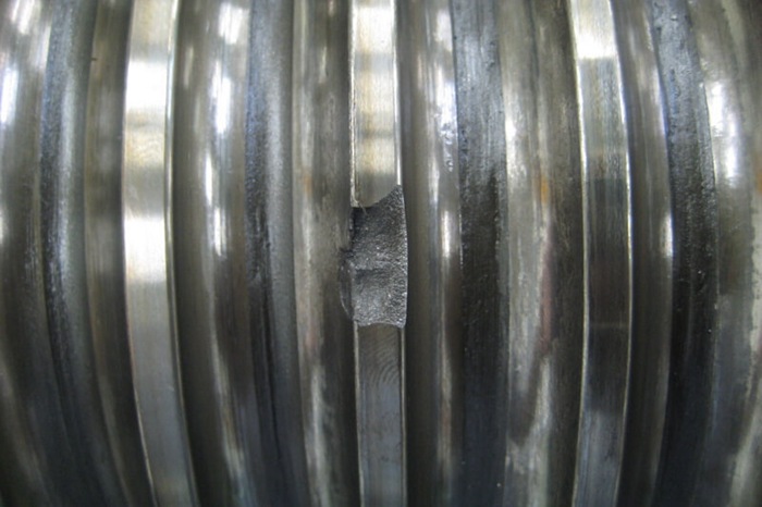 滾珠絲桿承受過(guò)大的負(fù)荷導(dǎo)致鋼珠迴流不順暢,使得螺紋面承受力集中在一起,超出絲杠可承受負(fù)荷范圍后,最終導(dǎo)致表面崩裂,進(jìn)而產(chǎn)生破損。